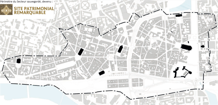 Le cœur historique de Nantes est protégé depuis le 22 mars 1972 au titre de la loi Malraux qui reconnaît une valeur exceptionnelle à une centaine de centres historiques en France. Sa dénomination «Secteur sauvegardé» a évolué, depuis la loi de 2016, en «Site patrimonial remarquable». Ce périmètre implique l’accord de l’Architecte des Bâtiments de France (dont le service est l’Unité Départementale de l’Architecture et du Patrimoine) avant toute intervention. Cet accord s’appuie sur un règlement préétabli. C’est le Plan de Sauvegarde et de Mise en Valeur, dit PSMV, qui contient toutes les règles d’urbanisme pour la restauration/modification de l’existant comme pour les projets neufs. Ce règlement remplace le Plan local d’urbanisme qui, lui, s’applique par ailleurs sur tout le reste de la commune.